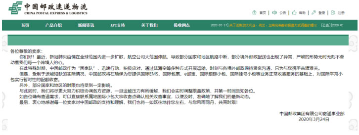 2020年3月24日,一则关于“中国邮政将停止发往德国、日本、法国、英国、西班牙、意大利和韩国包裹的收寄服务”的爆料引发了整个跨境电商圈的热议。