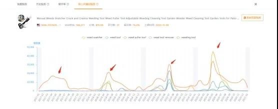 我们分别罗列了Weed Snatcher 除草器2017年与2021年期间的数据,判断近期时间组合热销产品的影响,帮助商户在2021年科学选品。