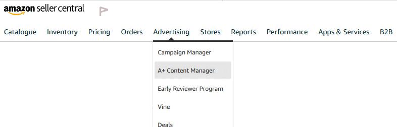 授予您访问A + Content Manager的权限后,您将在Seller Central的Advertising菜单下看到它。