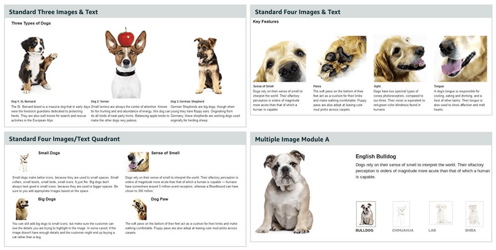 您是否曾经浏览过亚马逊上的产品页面,当您向下滚动至说明时,会看到小册子样式的设计,其中包含很多产品图像,比较表,有时还有视频,而不是通常的纯文本内容?