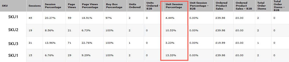 A + Content的目的是使客户更接近您的品牌和产品范围,从而提高您的转化率。卖家可以转到“卖家中心”中的“ 报告”,然后单击“按ASIN”下的“详细信息页面销售和流量”。在“单位会话百分比”的界面监控一段时间内的转化率。