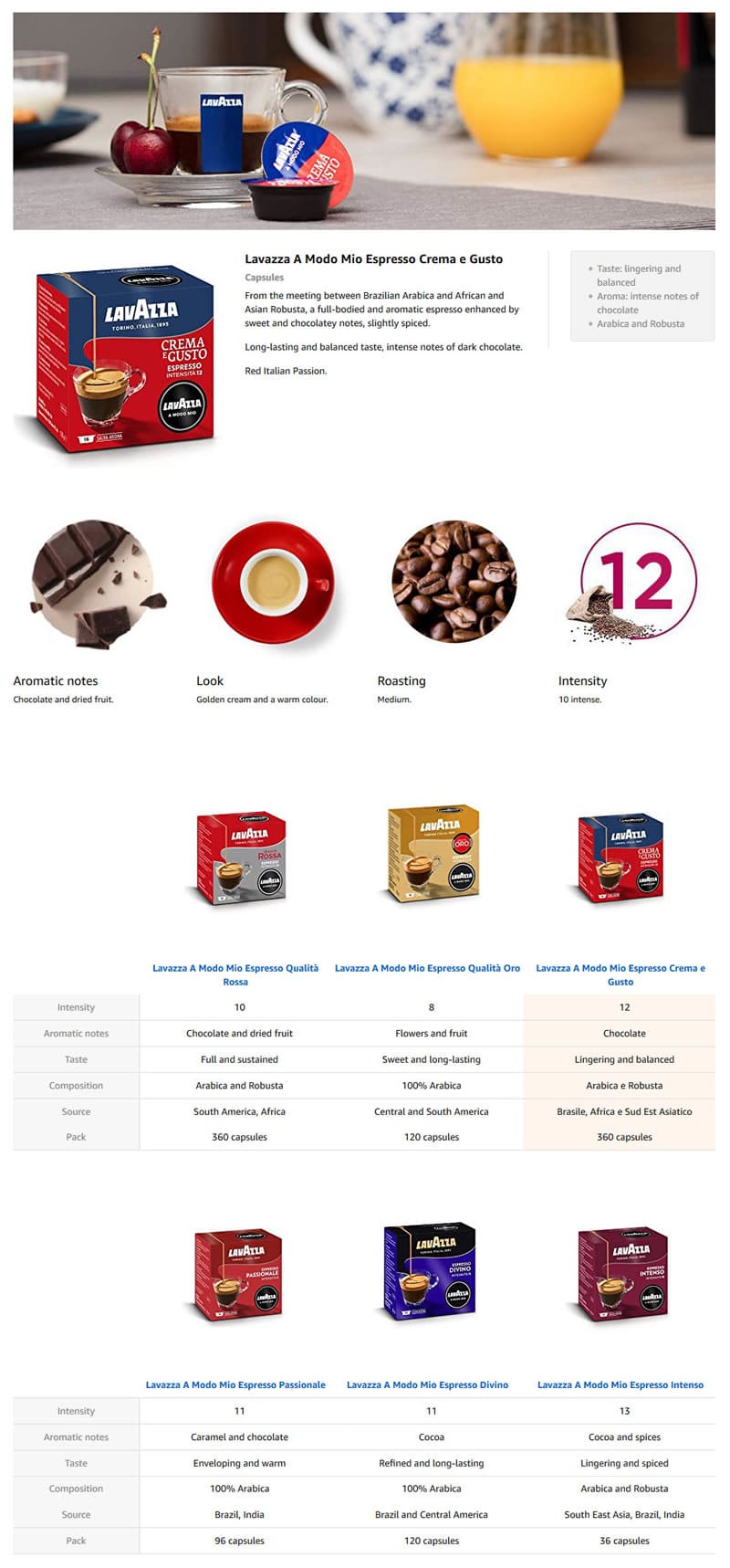 Lavazza强调其产品范围,并在其A +产品中使用以下内容非常清楚地展示了产品范围: