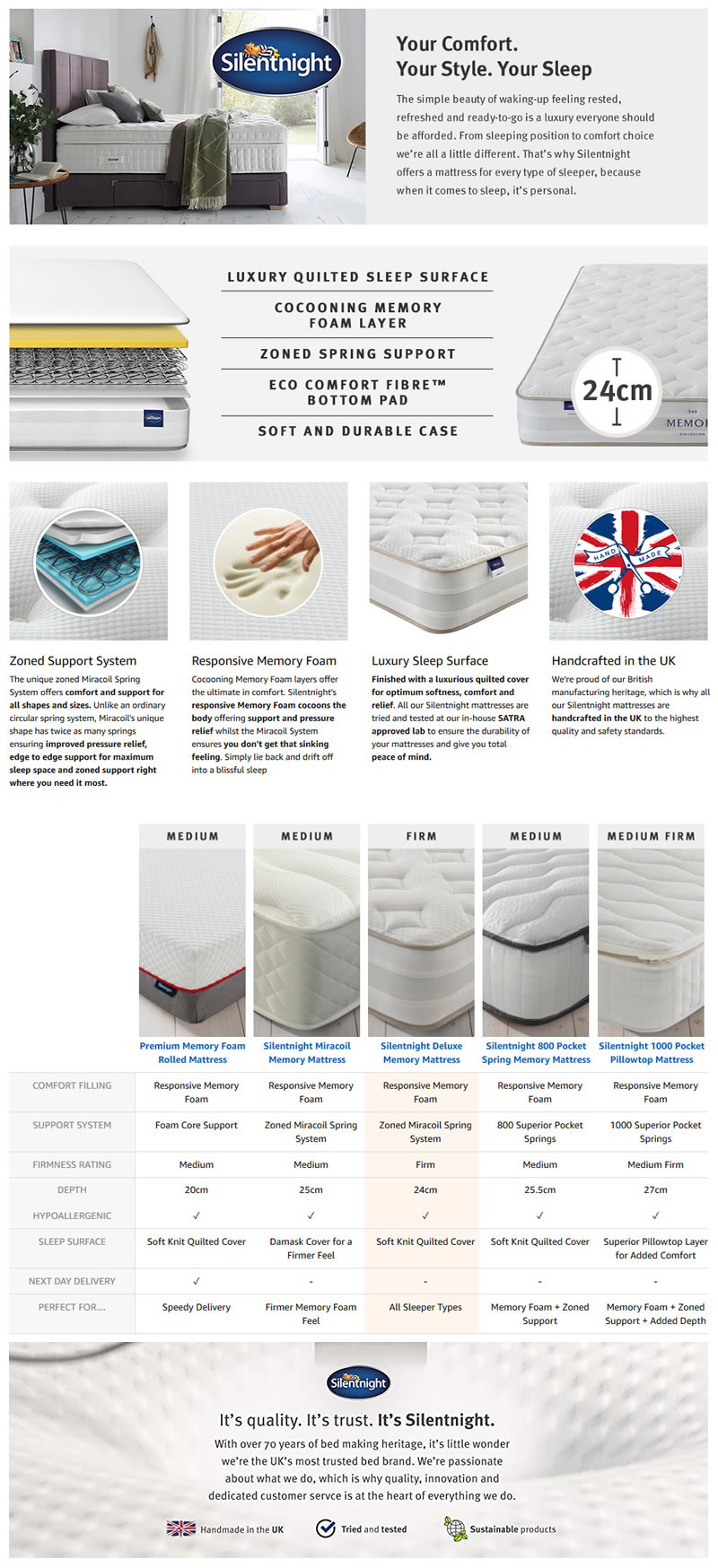 英国床垫品牌Silentnight设计了一个优雅的A +清单,还充分利用了比较模块。他们正在使用:
