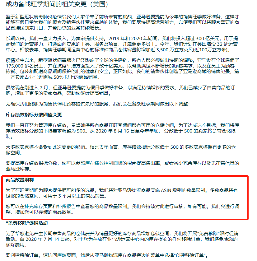 2. 亚马逊物流(FBA)商品实施入仓数量限制