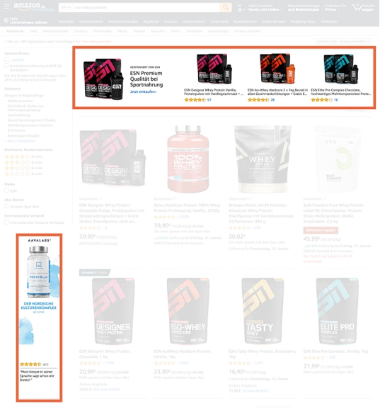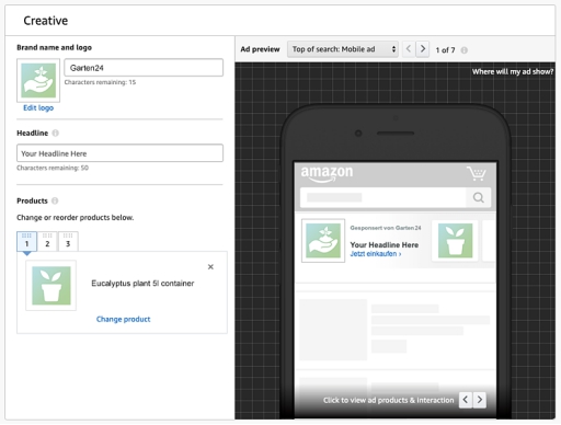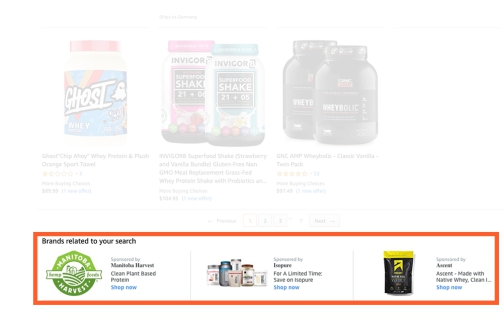 除了在页面上定位之外,广告客户还选择相同品牌的三种产品,特色图片或视频,并制作自定义的广告文案。通过单击图片,客户将被转到登陆页面或亚马逊商店或URL。当客户单击产品时,他们将被定向到产品详细信息页面抢占先机。