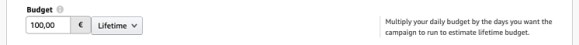 在这种情况下,由于我们促销产品的日期没有任何结束日期,因此唯一的选择是选择每日预算。超过15欧元的预算的话,亚马逊会全天投放广告。