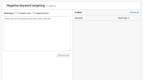 通过添加否定关键字,可以防止您的赞助商品牌广告与不相关的搜索查询一起显示。