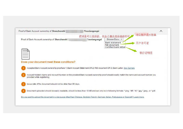 而在“银行账单”方面,卖家根据自己的情况上传即可(如下图)。