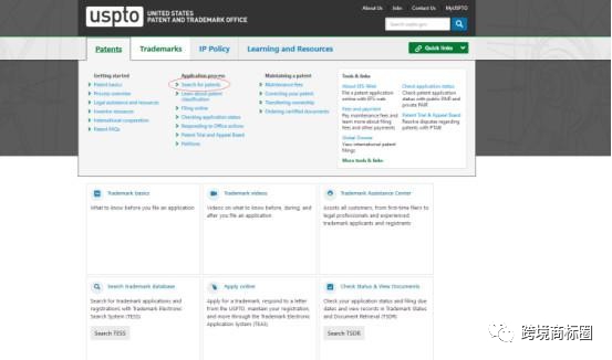 1. 进入美国商标专利官网后,选择Patents—Search patents