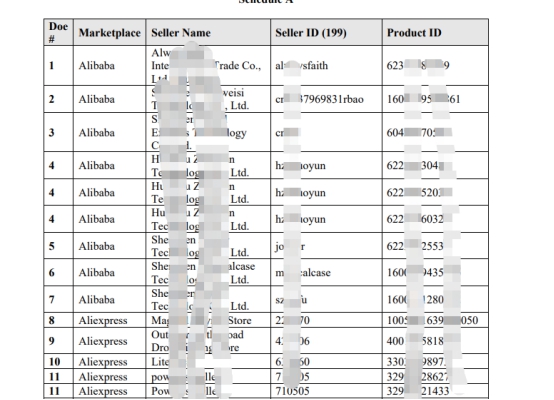 这个公司起诉的店铺包括亚马逊、速卖通、WISH、eBay等平台,并且涉案名单已公布出来。