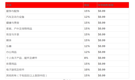 销售佣金(按类别收取):8%-15%