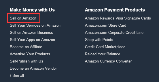 首先登录www.amazon.com网站,然后在网页最底部点击“Sell on Amazon”—“Start Selling”,然后开始注册个人几户。(如下图)