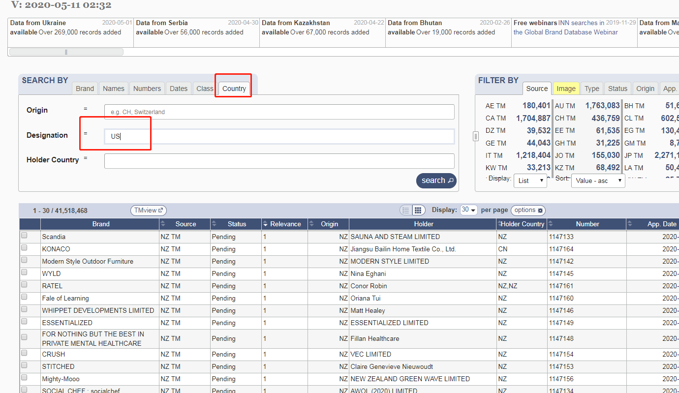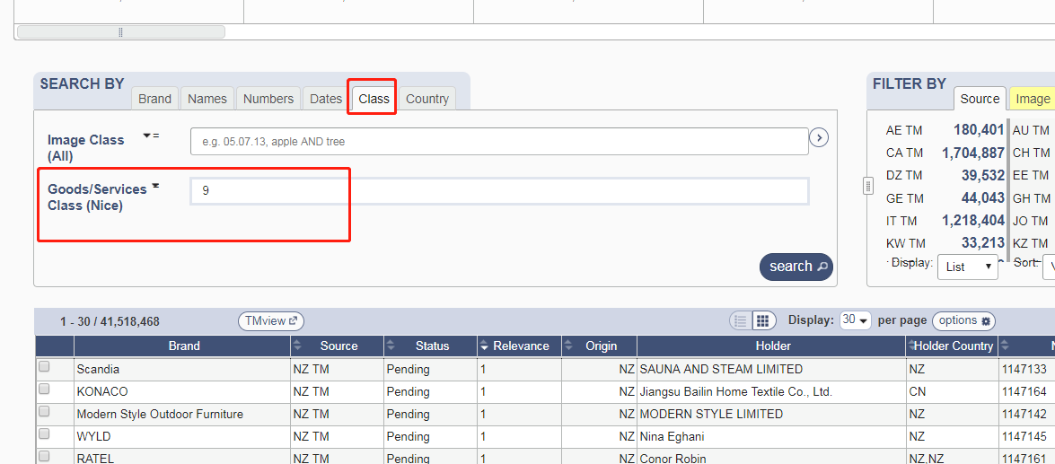 2.在红框里输入商标名,并带上破折号~ 因为 带了破折号才代表是范围检索,才可以检索的更多。