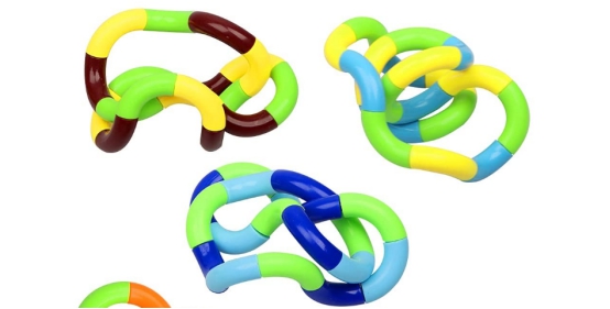 Tangle玩具是由一节节不同颜色的塑胶组成,接驳在一起后,可以任意搓扭,重新组装和反复使用,砌出不同形状。