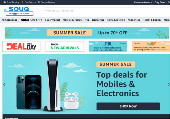 自2017年以来,亚马逊一直通过亚马逊公司Souq.com在埃及开展业务,引入在线购物服务,亚马逊在埃及运营着广泛的本地物流和运营网络,在埃及设有15个送货站。