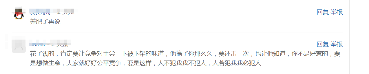 卖家3说”肯定要让竞争对手尝一下下架的味道,知道人不犯我,我不犯人。”