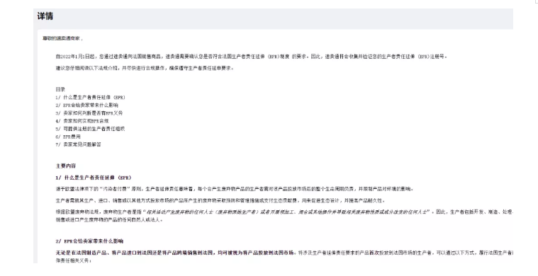 值得注意的是,速卖家平台这次除了强调将收集收集并验证您的生产者责任延伸(EPR)注册号外,还提供了EPR的合规申报方法。