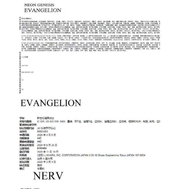 原告品牌:NEON GENESIS EVANGELION 新世纪福音战士