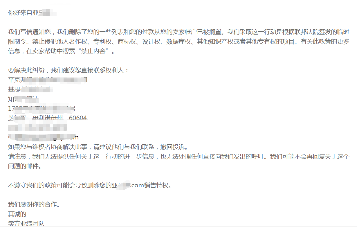 相信很多跨境卖家曾经或现在都收到这样的邮件“根据联邦法院签发的临时限制令,该卖家涉嫌商标、专利等侵权,因此下架其部分产品,冻结了账户资金。”