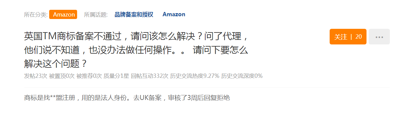 此外,在某论坛上,品牌君发现了很多英国卖家在备案的时候也是遇到类似情况。
