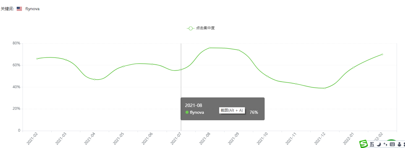 从2021年至2022年的搜索数据来看,2021年8月份与2022年2月份是这款商品的搜索高峰期。