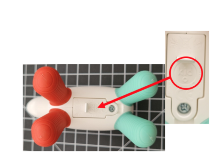 小狗肚子上的电池盖上写着“Kid O”带有可以发出红色或绿色光的斑点。小狗的腿是红色和绿色的纹理软塑料,适合出牙的孩子使用。