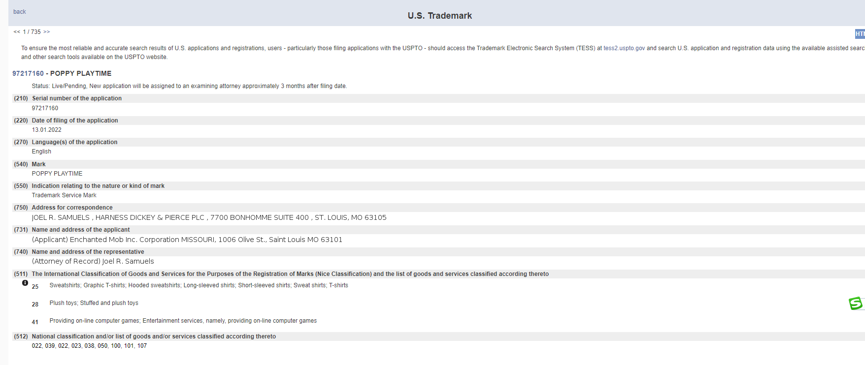 通过检索发现,该公司已于2022 年 1 月 13 日申请美国商标。虽然目前尚未注册完成,但仍有可能被投诉商标侵权的风险。