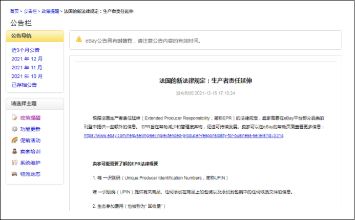 值得一提的是,在去年年底,eBay就已经宣布,根据法国循环经济反浪费法,自2022年1月1日起,法国站的卖家,就必须申请法国EPR。