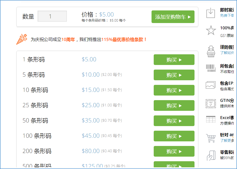 另一方面,正版的UPC条形码并不便宜,买的数量越少,价格越贵,如果单纯只卖一个条形码的话,价格还高达5美元。