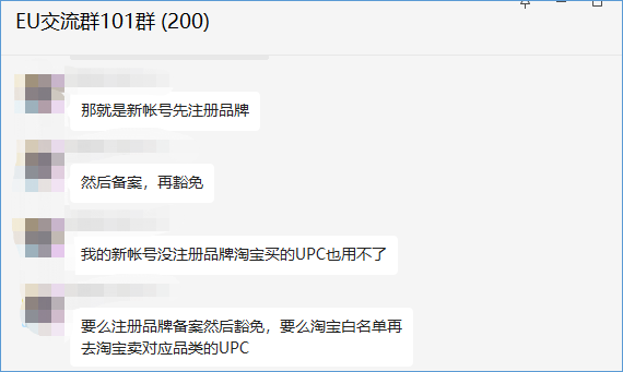 EU交流群的群友认为,要避免新账号出现以前的问题,就要先进行品牌备案,再通过品牌备案进行UPC豁免。