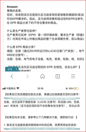 与此同时,据卖家反馈,他们也收到了平台督促其注册德国EPR的邮件。