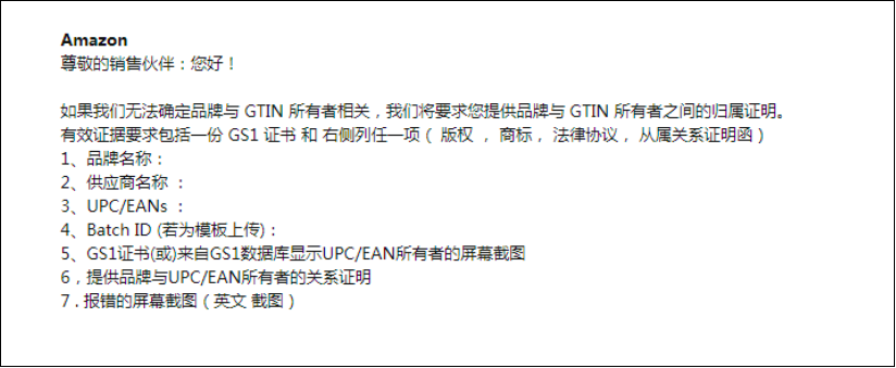 电商平台告知卖家朋友,如果你的“GTIN未经GS1出售或未被品牌所有者授权认可,则视为无效”。