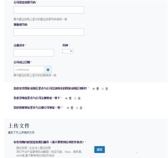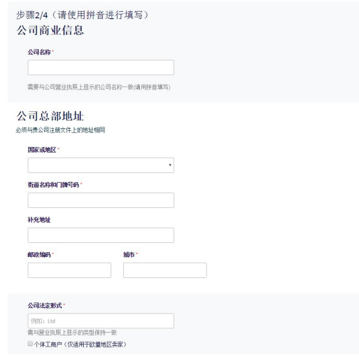 A.公司商业信息填写:用拼音填写营业执照上的公司名称