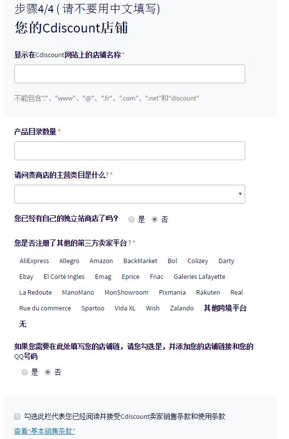 D.是否有独立站,有独立站的话Cdiscount可以合作做推广的哦