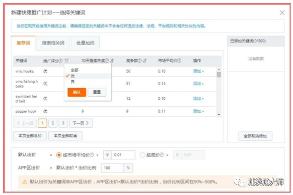 筛选优词,添加全部关键词