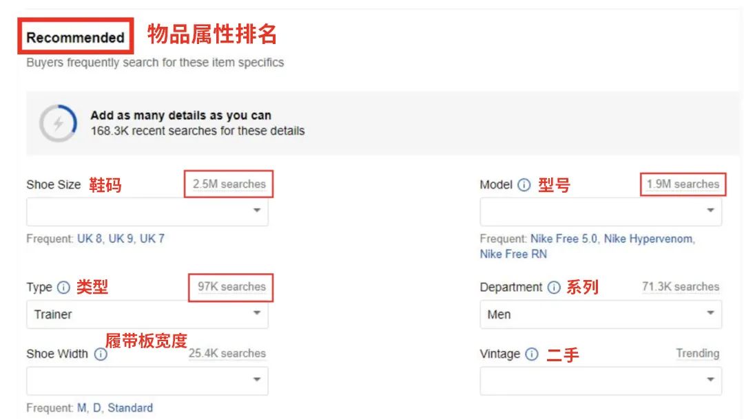 在刊登流程中,此功能将利用买家需求数据(过去30天内的搜索次数),向卖家提供有关买家正在搜索的重要物品属性的指南。
