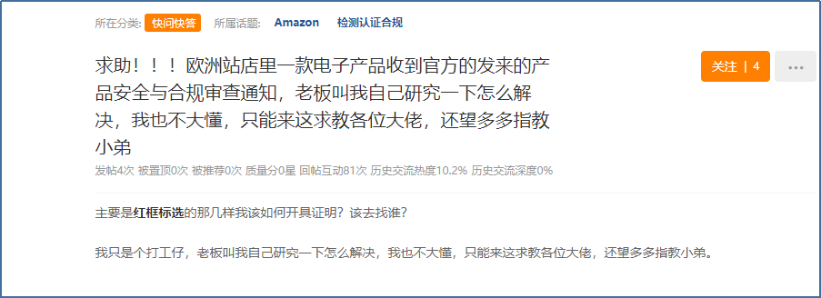 “求助!欧洲站电子产品收到产品安全与合规审查,我也不太懂,求教大家如何处理?”