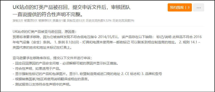 最近,英国站灯类产品的卖家似乎都不太平,原因是: