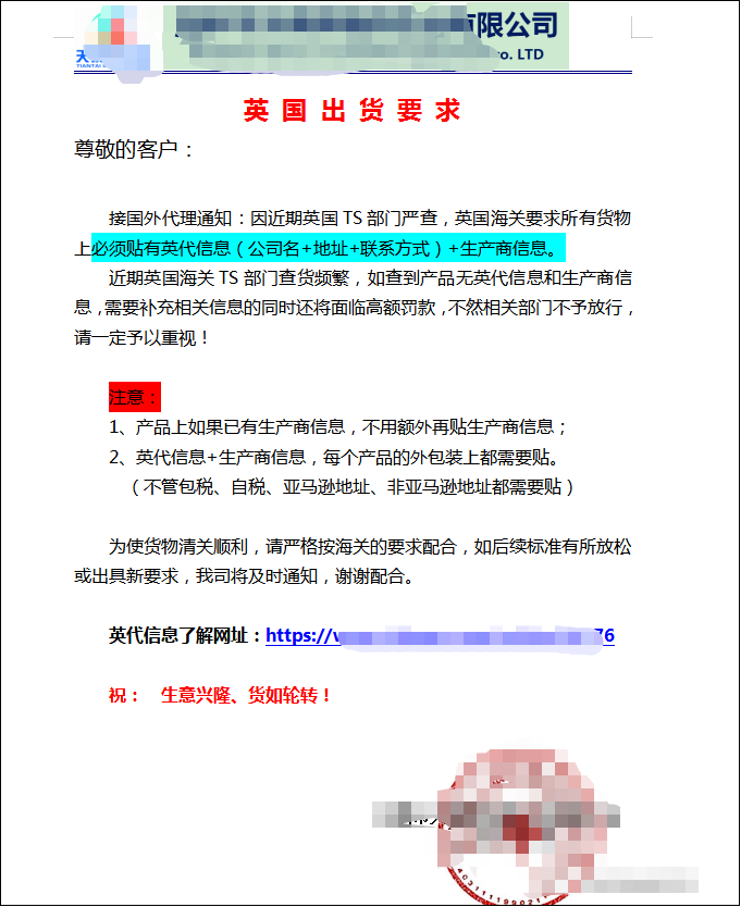 值得一提的是,在今年2月份的时候,有关“英代”的事情闹得沸沸扬扬,有货代公司就用红头文件发布了英国海关需要卖家提供英代的通知。如下图: