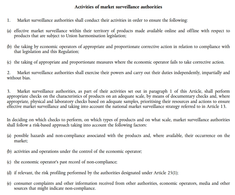 3. 市场监督局通过统一的产品检查规则,查明违规产品的具体风险或严重违反欧盟立法的情况。
