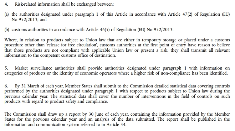 6. 一个成员国的市场监督机构使用的证据可以用作调查的一部分,以验证另一成员国的市场监督机构进行的产品合规性,而无需任何进一步的正式要求。