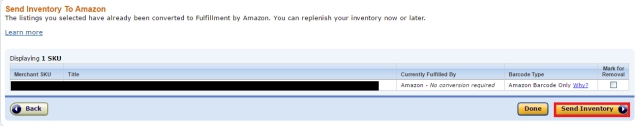 如果您的产品已经是FBA了,那么现在要做的就是单击“发送库存”。如果您的商品是“符合商家要求”的商品,则首先需要将其转换为FBA清单,然后才能继续进行,不过你不用担心,这些步骤亚马逊会在必要时提示您。