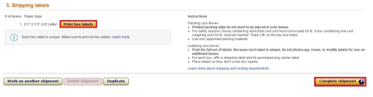 接下来,单击“打印盒标签”以下载运输标签,该标签如下图所示。现在,需要将其安全地放在您的运输箱上–确保将其放置在运输箱的侧面,而不是按照亚马逊指南的顶部。