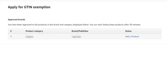 这样的界面就代表成功备案了,在品牌对应的类目下,点击右边的“Add a Product”,这样就不需要再买UPC码了。