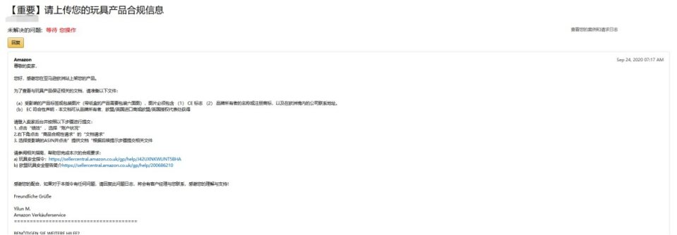 在去年,亚马逊为了保证玩具产品质量和买家安全,就删除了很多不合规的listing, 然后要卖家提交产品合规声明(DOC)去申诉,而今年,虽然先不删除listing,但是产品更加严格,涉及的产品范围更广,要求提交产品合规性文件的asin也涉及多个类目。