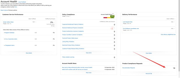 1.首先,进入亚马逊后台,进入“绩效”-账户状态-商品合规性请求。