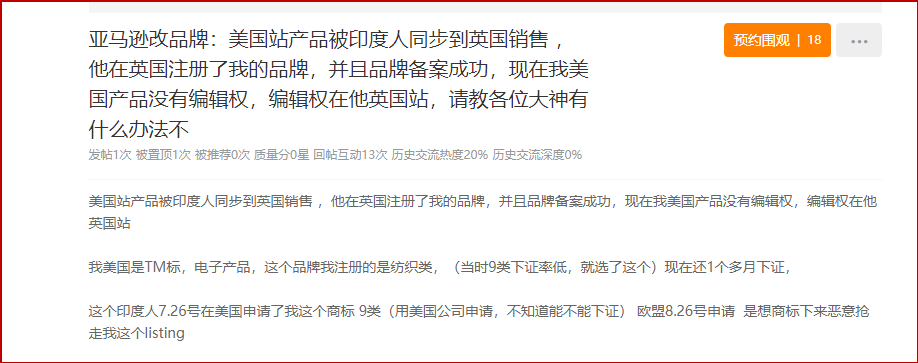 销售好好的美国站,仅仅因为竞争对手注册了英国商标,竟然让美国站的卖家丧失了编辑权。