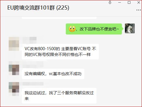 不过,EU交流群的群友认为,遇到这种情况,只能找VC店铺改品牌名,如果不通过VC基本是抢不回来的。