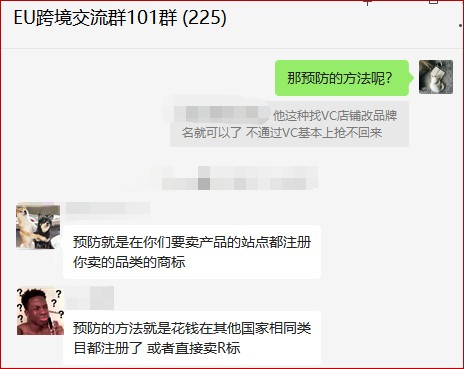 在提到我们如何预防同类事件再次发生的时候,很多群友异口同声地回答,“预防的方法就是要卖的产品,在各个站点都注册商标。“