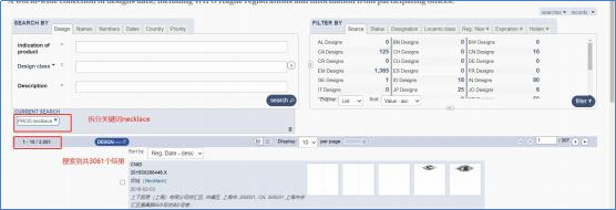 假如“ necklace clasp”是我们要查询的关键词,但是我们直接搜索会发现,只要包含 “ necklace”或者“clasp”的专利都会出来。